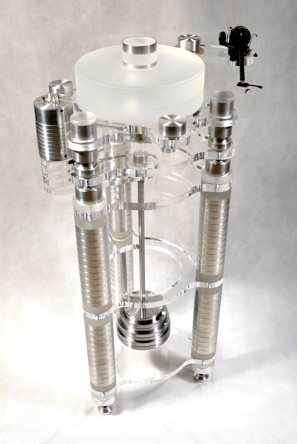 Диск, традиционно для студии, акриловый, и служит не только опорой для пластинки, но и маховиком, делая вращение более плавным. В проигрывателе используется привод с большим крутящим моментом, поэтому тяжелый диск быстро раскручивается до требуемой скорости. В едином блоке управления двигателем предусмотрен переключатель скоростей вращения 33 и 45 и опционально 78, предусмотрена точная подстройка скорости по шаблону, который прилагается в комплекте.
